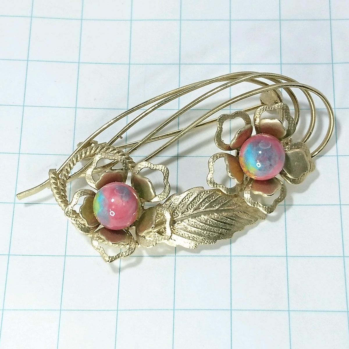 送料無料)ビンテージ☆陶器玉 フラワーデザイン☆アンティークブローチ A10585
