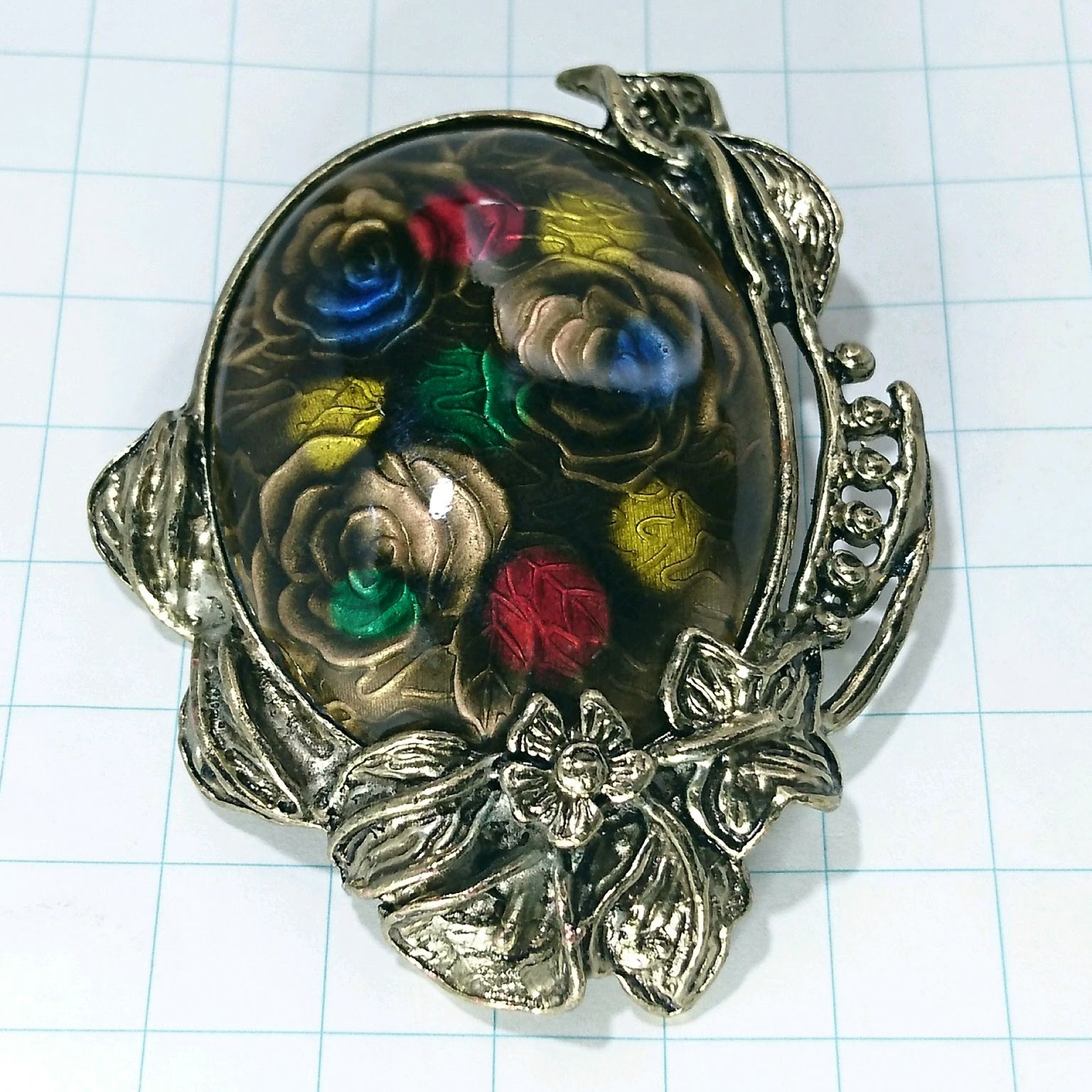 送料無料)ビンテージ☆七宝焼き 薔薇モチーフ エンブレム☆アンティークブローチ A11385