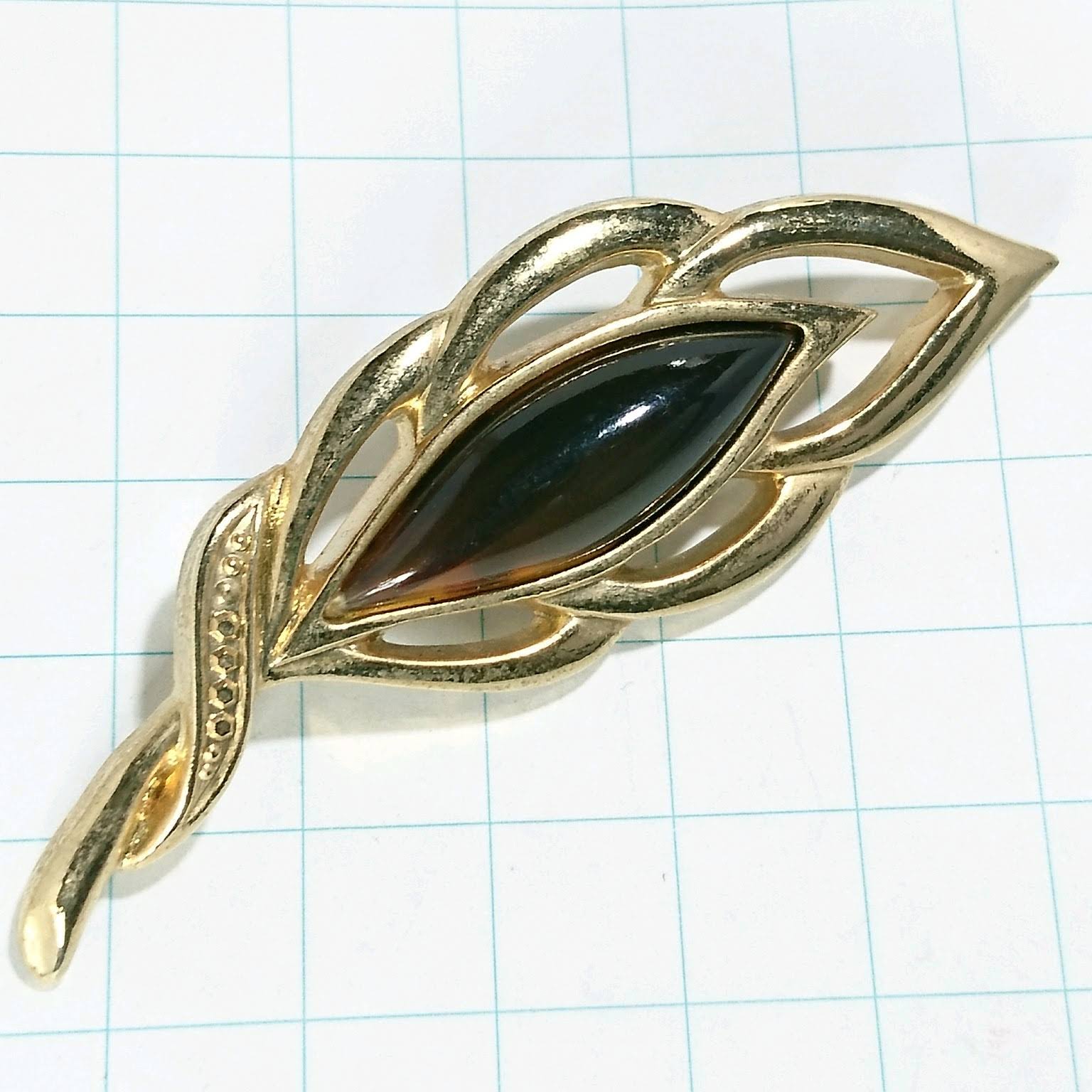 送料無料)ビンテージ☆ブラウンストーン☆アンティークブローチ A12986