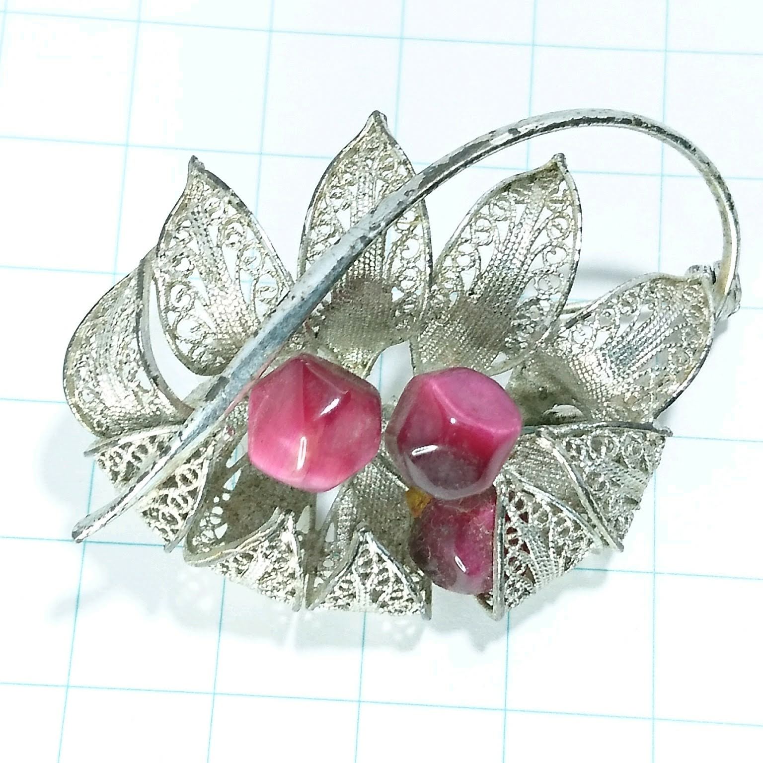 送料無料)ビンテージ☆ピンクストーン 木の実モチーフ☆アンティークブローチ A13717