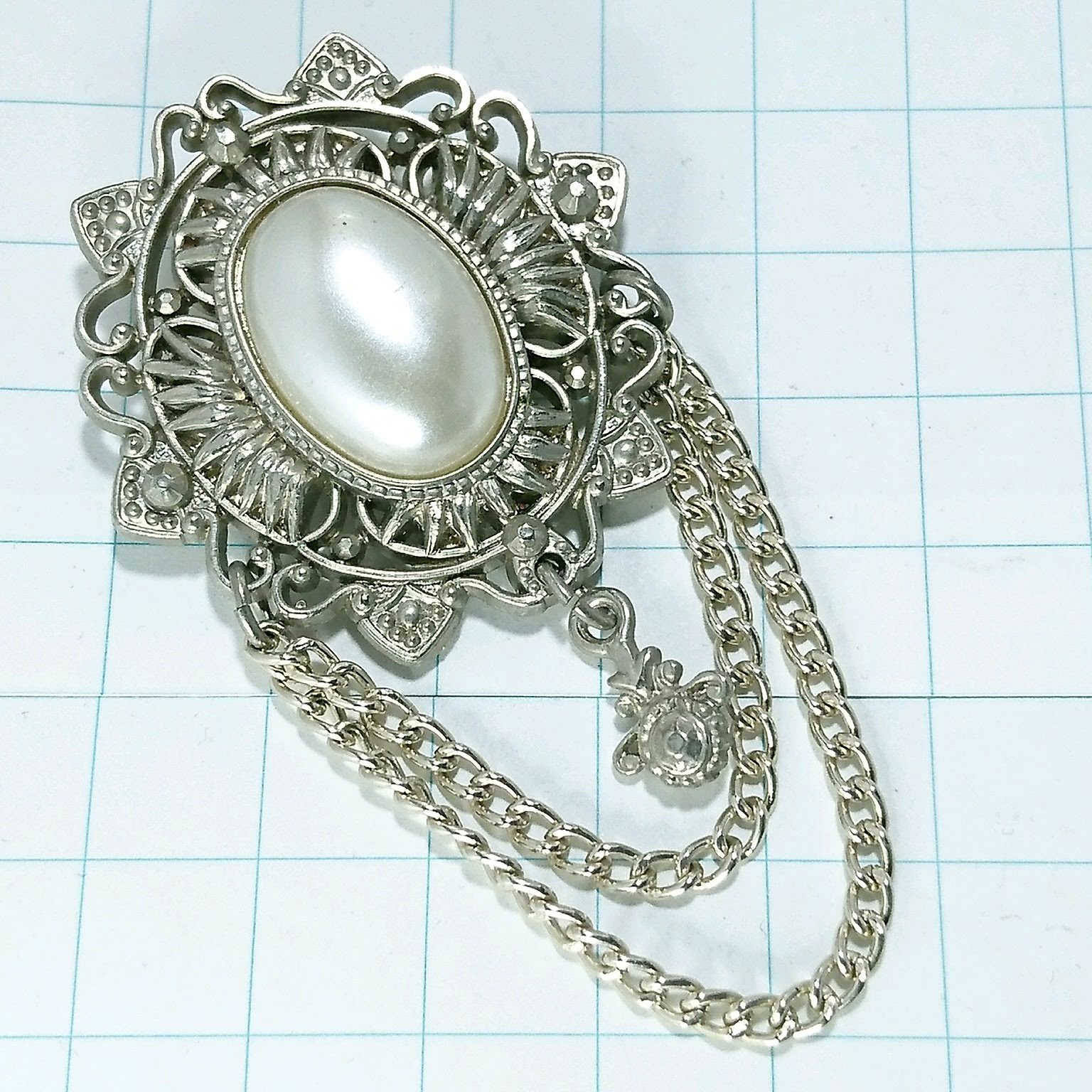 送料無料)ビンテージ☆パール フェイク チェーンエンブレム☆アンティークブローチ A13971