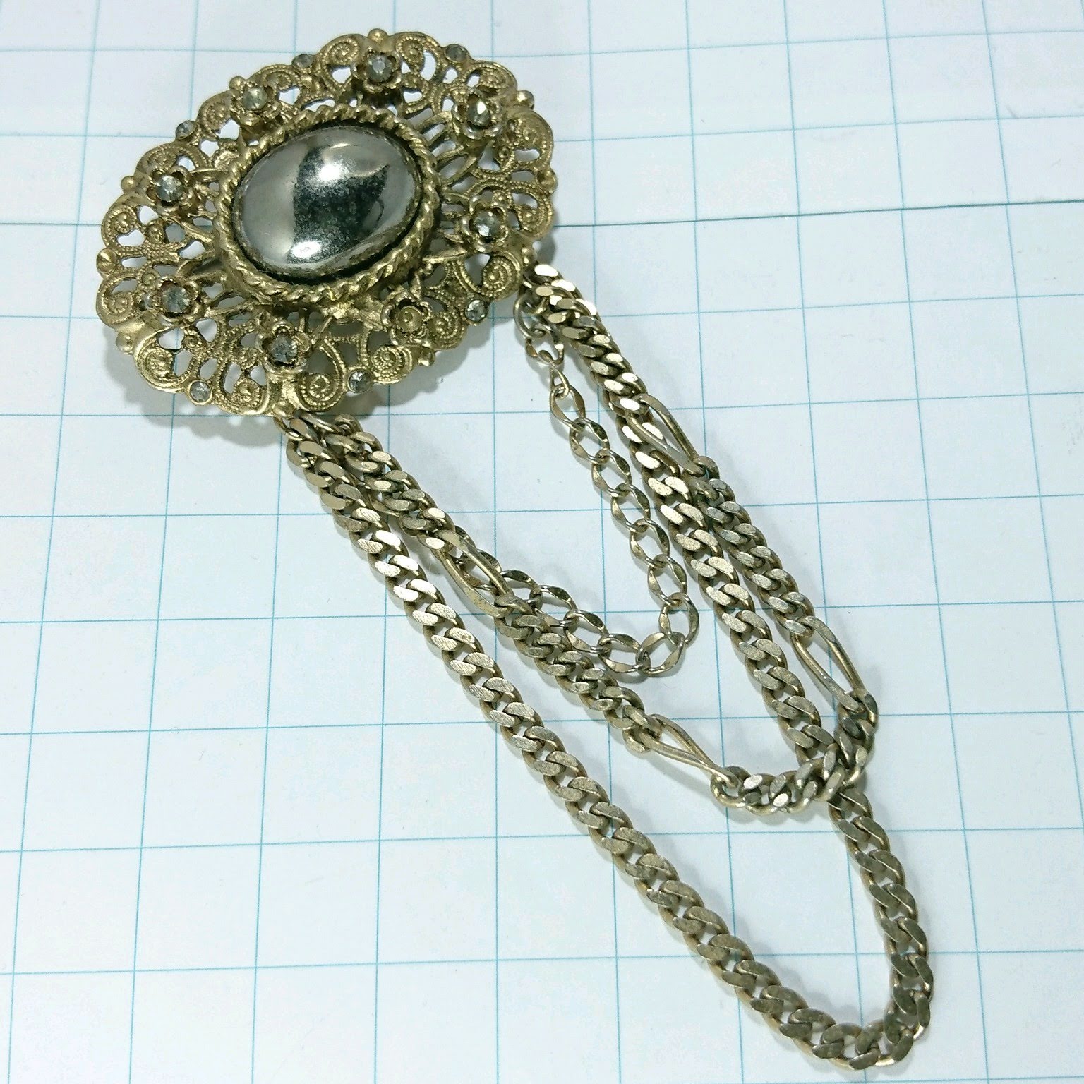 送料無料)ビンテージ☆チェーンエンブレム☆アンティークブローチ A13988