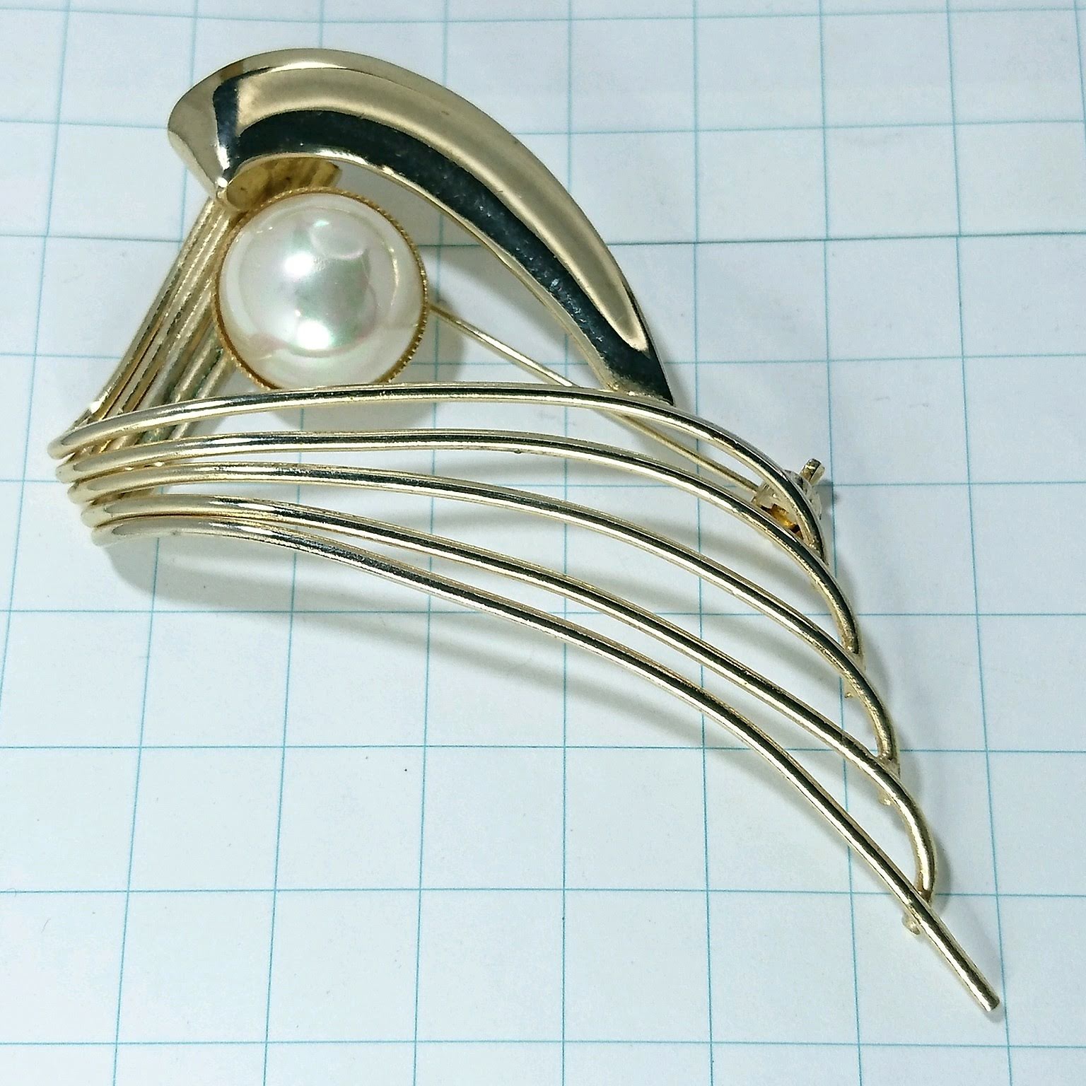 送料無料)ビンテージ☆パール フェイク ウェーブデザイン☆アンティークブローチ A13993