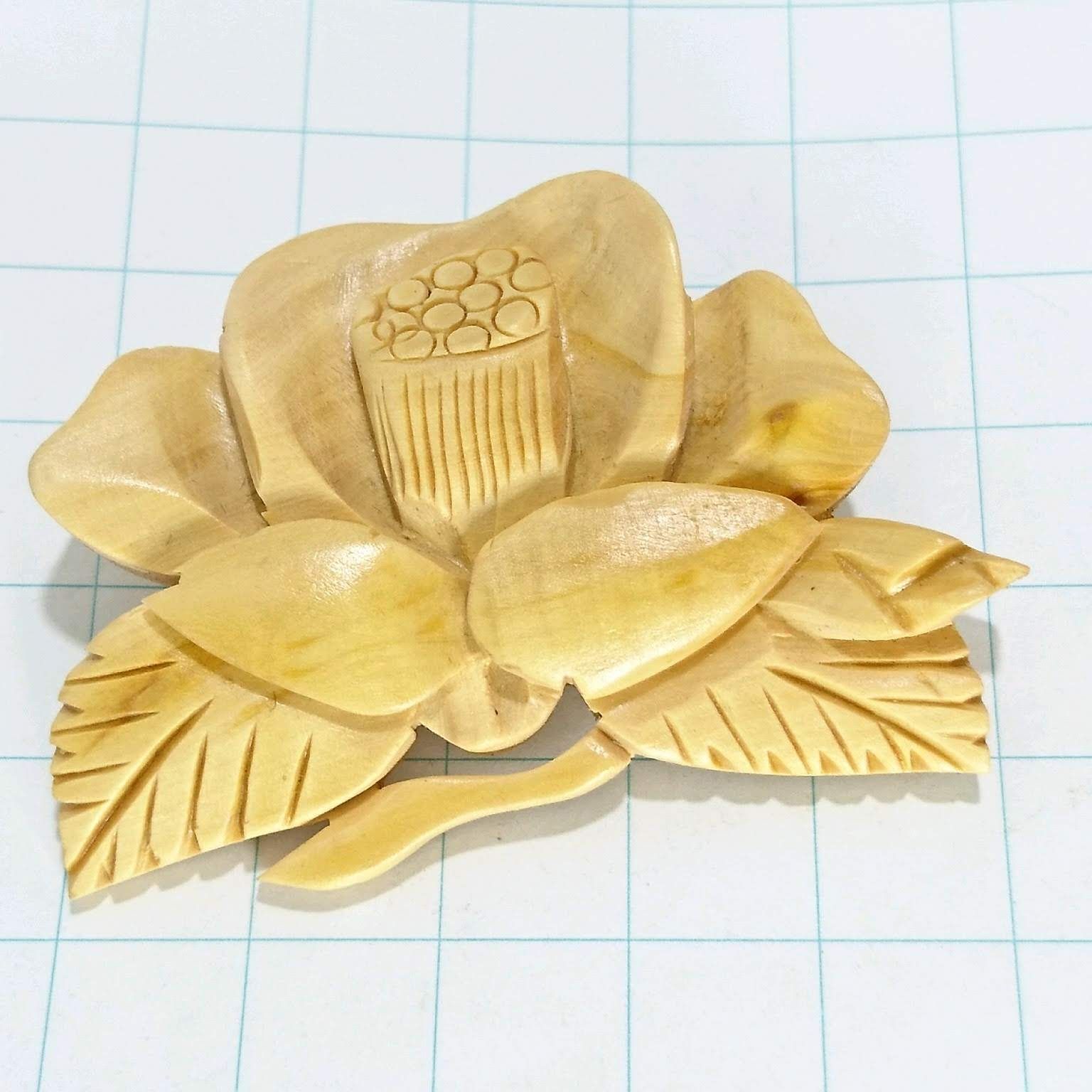 送料無料)ビンテージ☆木彫り 椿モチーフ☆アンティークブローチ A17228