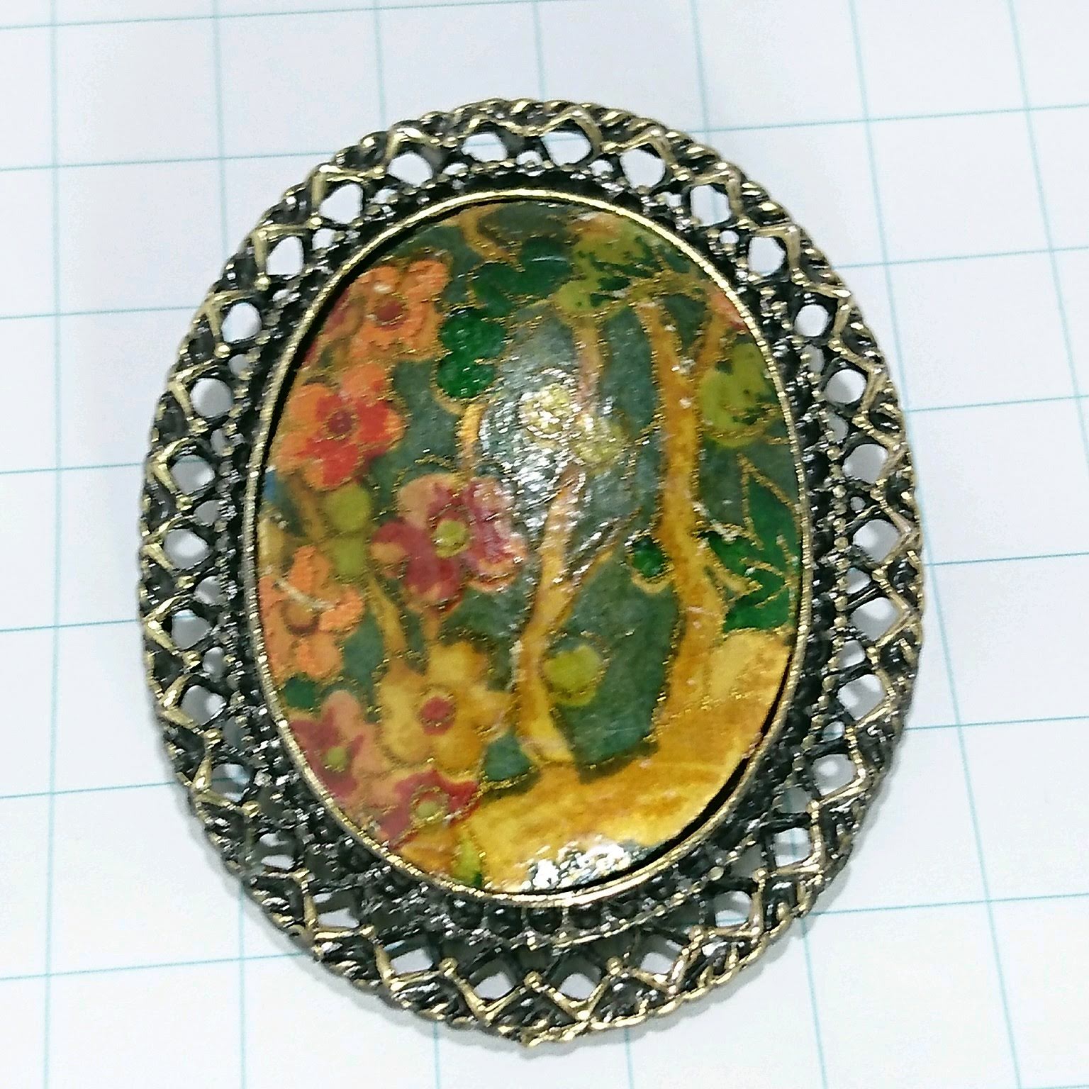 送料無料)ビンテージ☆七宝焼き 森デザイン☆アンティークブローチ A17769