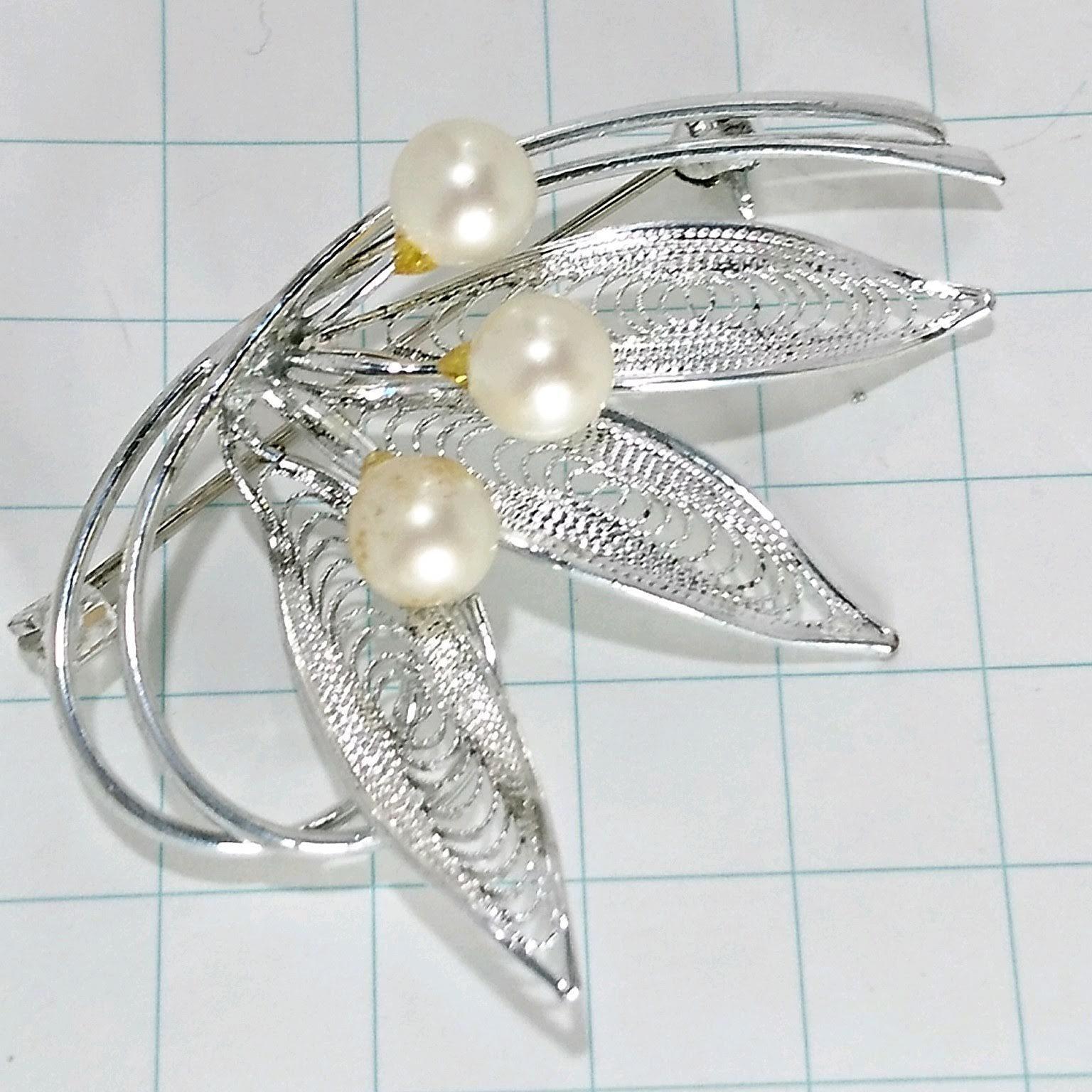 送料無料)ビンテージ☆パール 草花モチーフ☆アンティーク ブローチ A20699