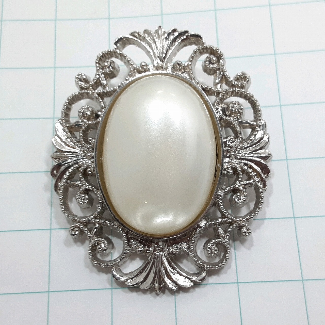 送料無料)ビンテージ☆パール 定番エンブレム☆アンティーク ブローチ A32621