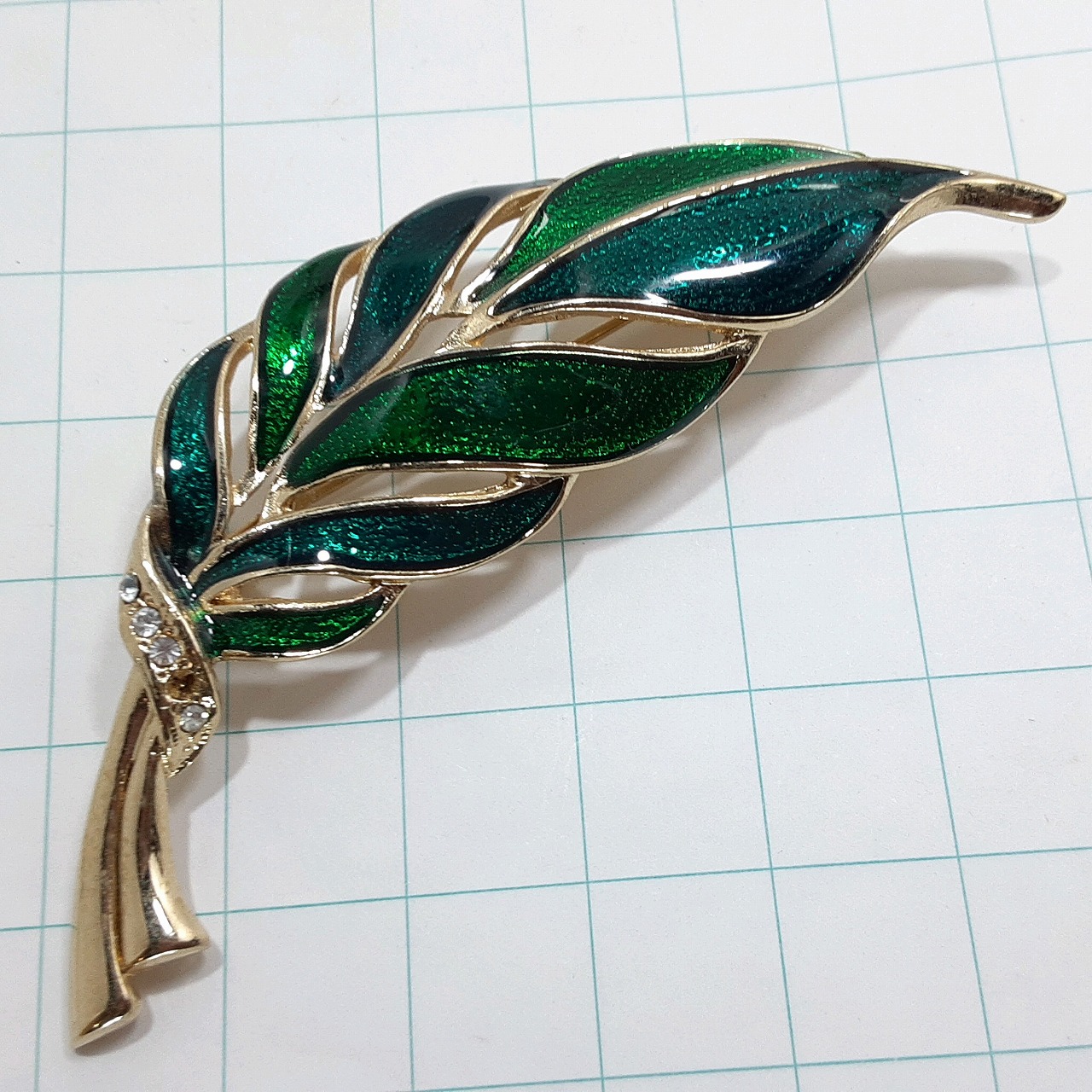 送料無料)ビンテージ☆七宝仕上げ 葉っぱモチーフ☆アンティーク ブローチ A32627