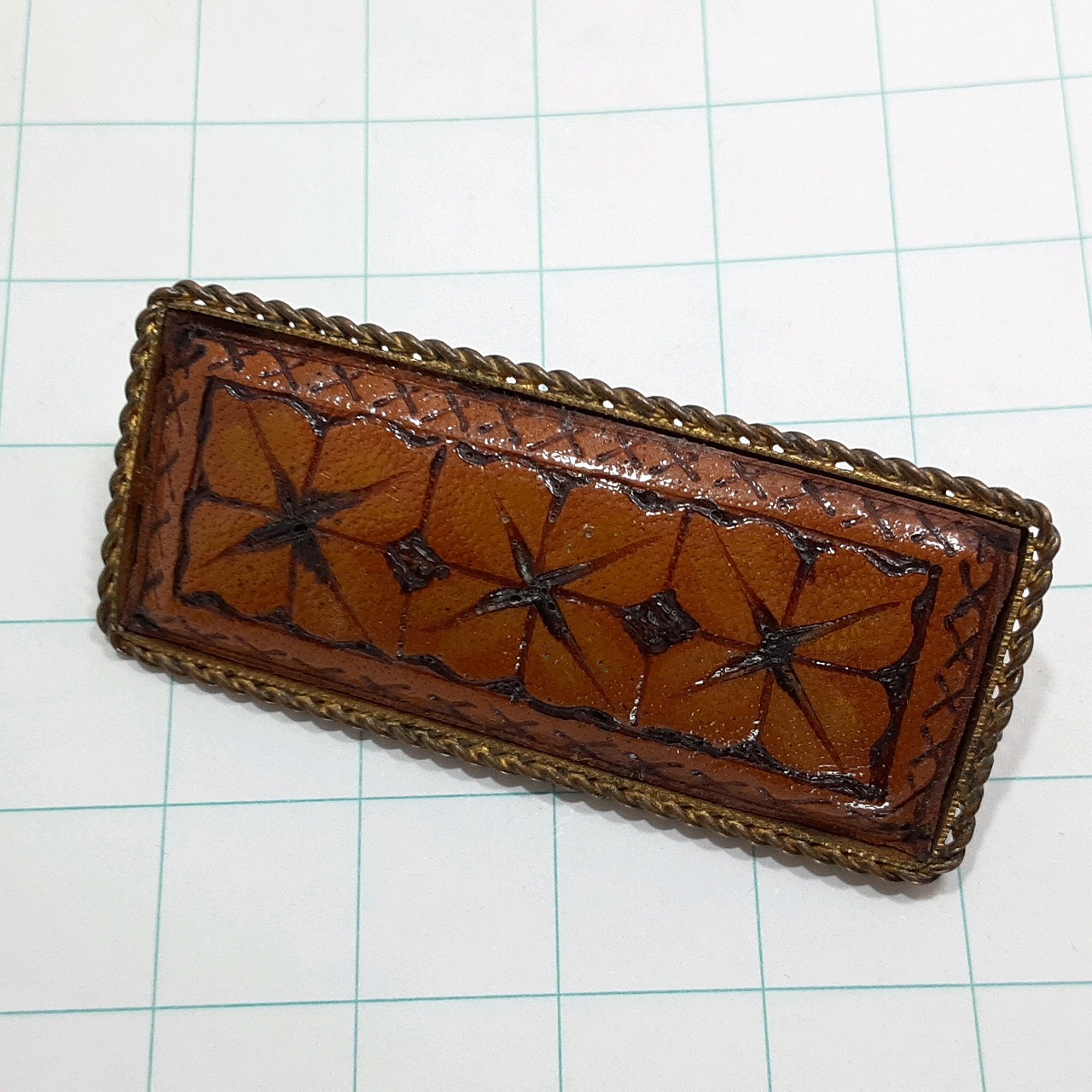 送料無料)ビンテージ☆本革張り☆アンティーク ブローチ A32633