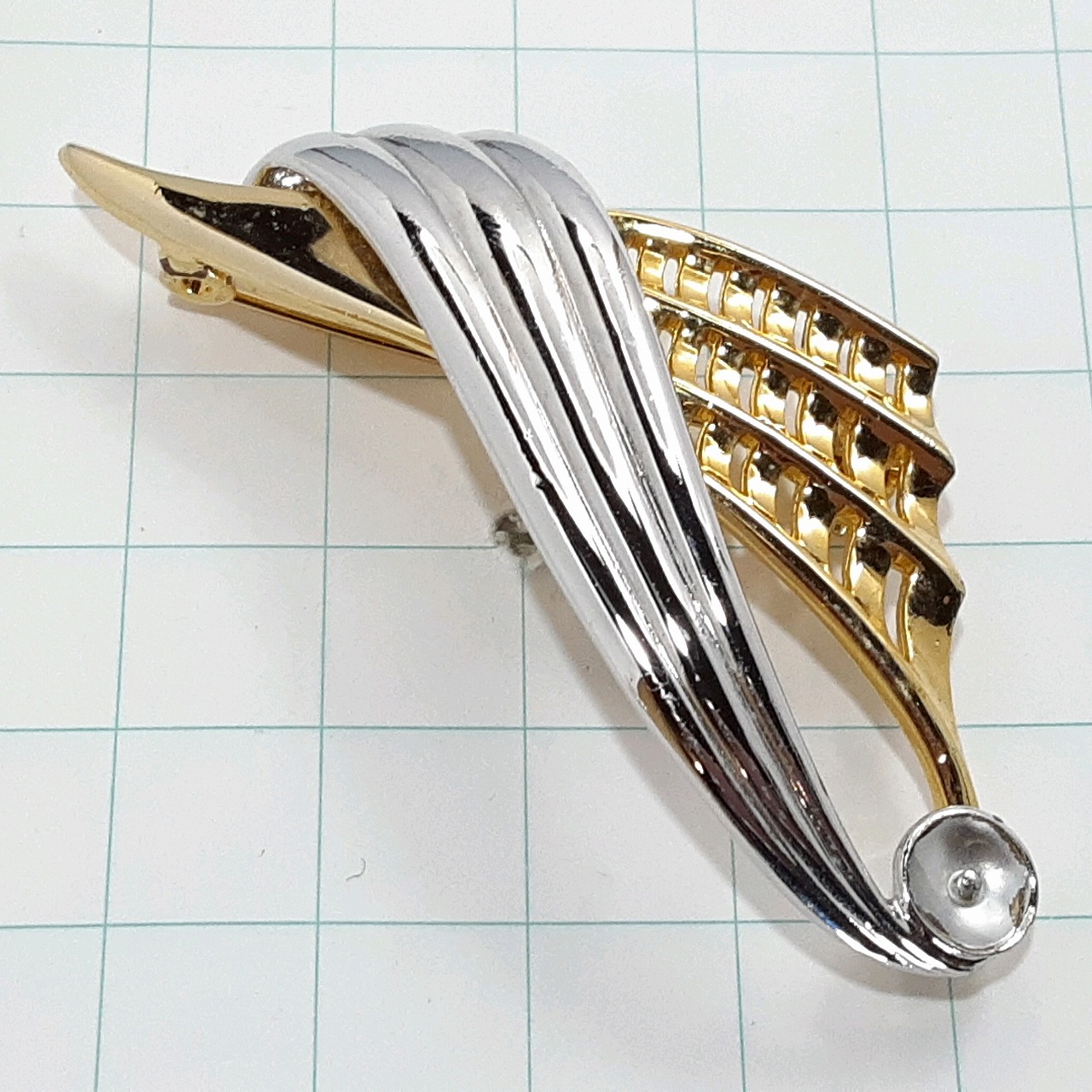 送料無料)ビンテージ☆ゴールドシルバーコンビ☆アンティーク ブローチ A32838