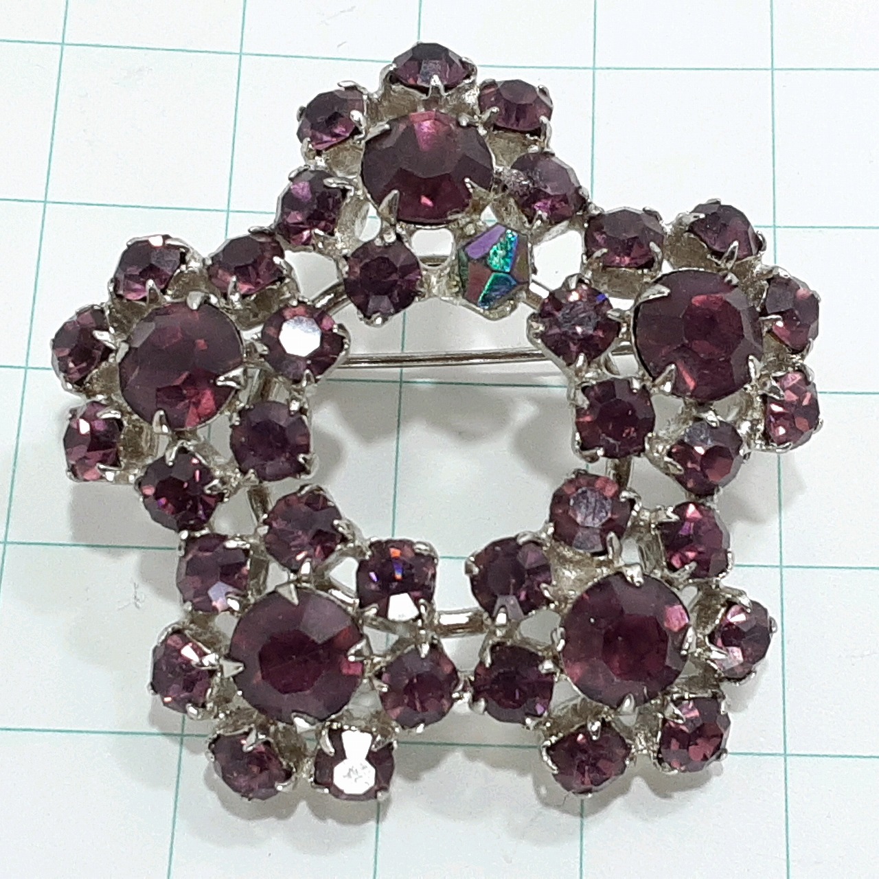 送料無料)ビンテージ☆パープルラインストーン フラワーデザイン☆アンティーク ブローチ A33029