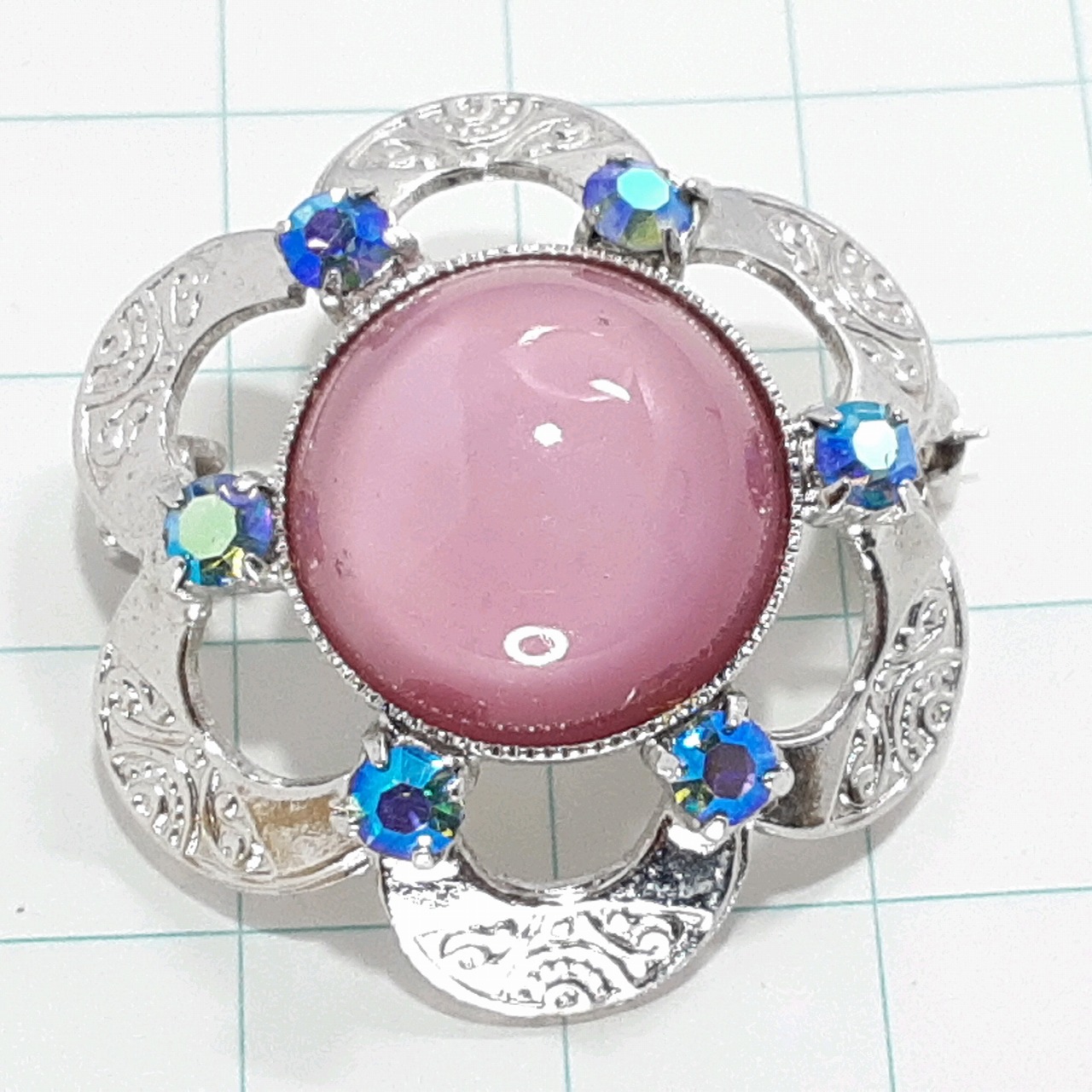 送料無料)ビンテージ☆ピンクボール フラワーデザイン☆アンティーク ブローチ A33043