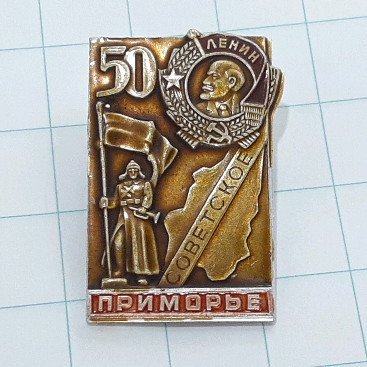 送料無料)ソビエト連邦 プリモーリエ 50周年 レーニン ソビエト軍兵 旅行観光記念 輸入 ピンバッジ ピンズ PINS A33323