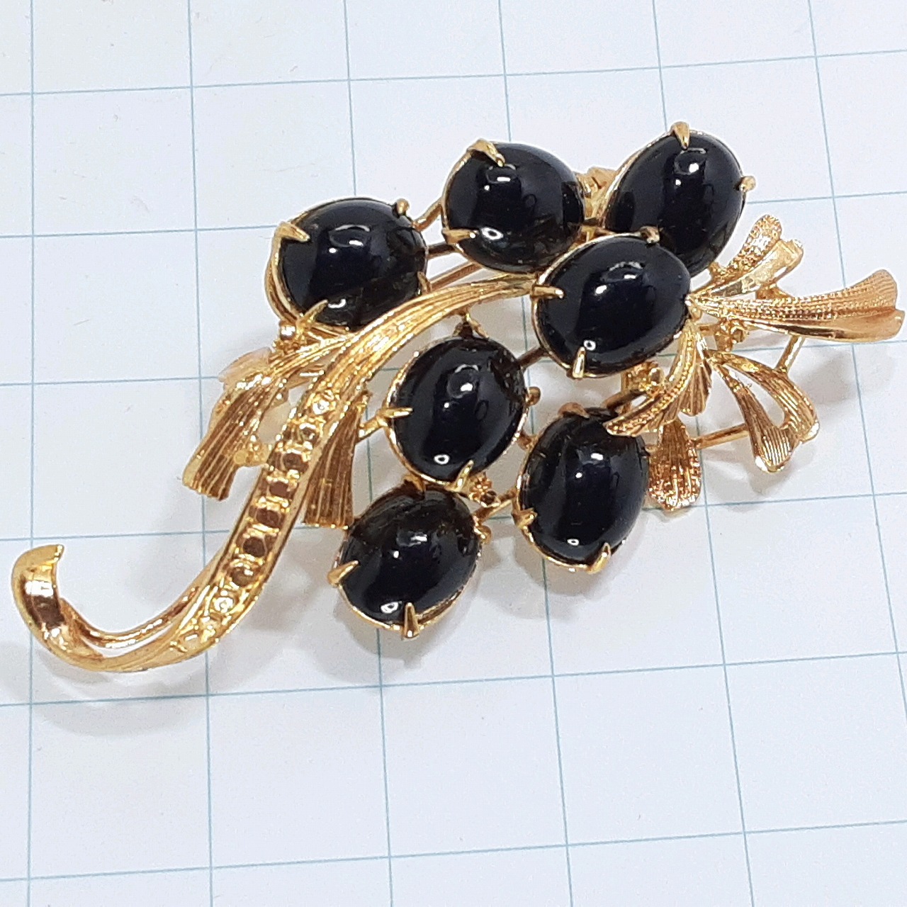 送料無料)ビンテージ☆ブラックストーン☆アンティーク ブローチ A33674
