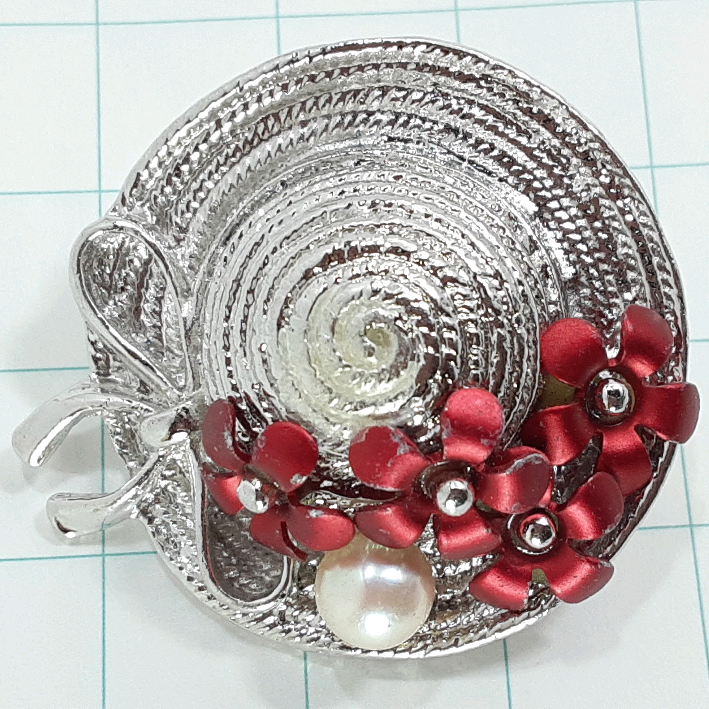 送料無料)ビンテージ☆スカーレット・チャーム 帽子モチーフ☆アンティーク ブローチ A33845