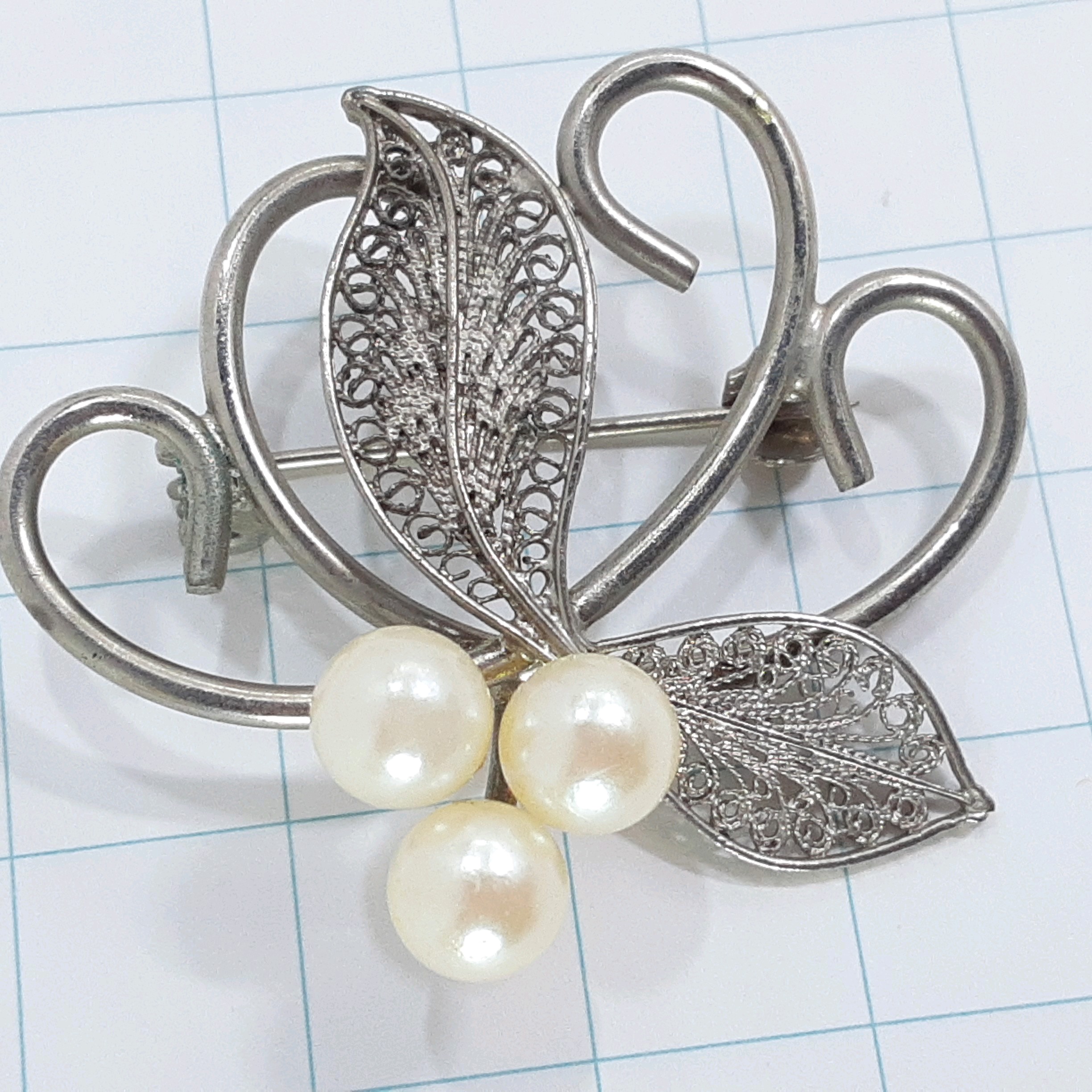 送料無料)ビンテージ☆パール お花モチーフ☆アンティーク ブローチ A33849