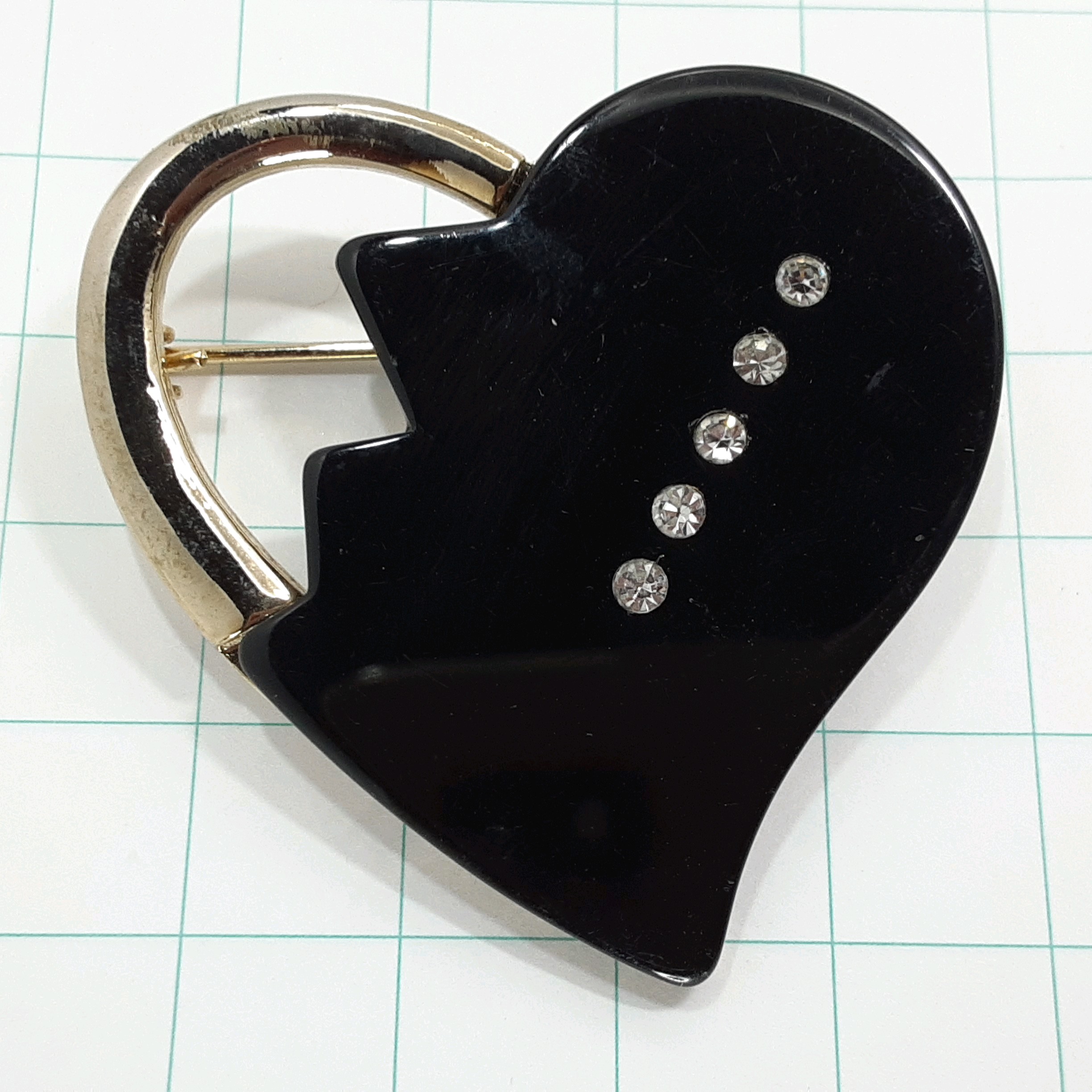 送料無料)ビンテージ☆ブラックハート☆アンティーク ブローチ A33857