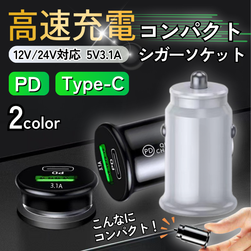 シガーソケット カーチャージャー 充電器 iphone 車載 USB タイプC スマホ PD 固定 緩み防止 android