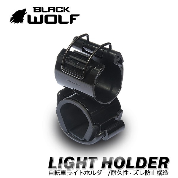 【BLACKWOLF(ブラックウルフ)】自転車ライトクリップホルダー/BLACK WOLFオリジナル設計 軽量&抜群の固定力&耐久性。割れに強い、ズレない、ライトサイズに段階調整、軽量ハンドルとの距離感、形状性/自転車ライト、マウンテンバイク、ロードバイク