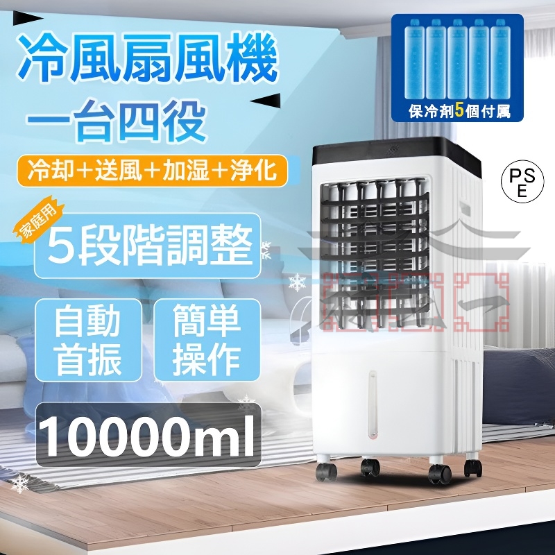 2025最新版 冷風機 業務用 扇風機 冷風扇 一台四役 サーキュレーター 小型 羽なし 保冷剤5個付 静音 10L大容量 自動首振り 移動式エアコン リビング 熱中症対策