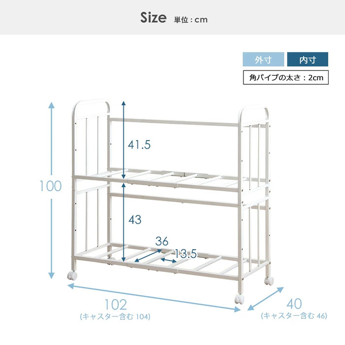 布団収納ラック 布団ラック 2段 キャスター付き 高さ調整 幅104 奥行46 高さ100 布団収納 押入れ収納 押入れワゴン クローゼット収納 スチールラック シングル