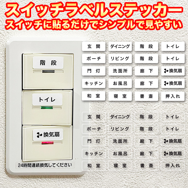 スイッチ シール 20ピースセット ラベル ウォールスイッチ ステッカー 照明 ライト 換気扇 リビング 玄関 キッチン トイレ 廊下 寝室 耐水