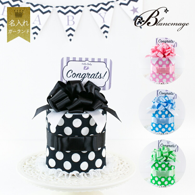 | 商品名 | 出産祝い 名入れ ガーランド付 おむつケーキ シンプルリボン1段 |