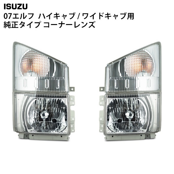 いすゞ 07 エルフ 純正タイプ ヘッドライト コーナーレンズ 4点セット