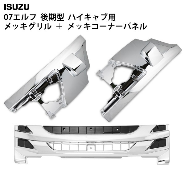 いすゞ 07 エルフ 後期型 ハイキャブ用 メッキ フロントグリル コーナーパネル セット