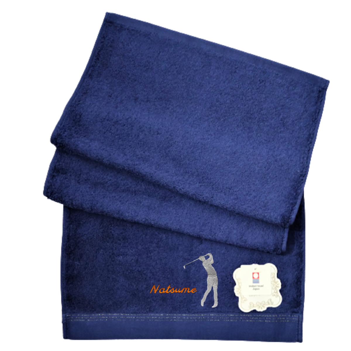男子ゴルファーとお名前刺繍入り今治フェイスタオル 名入れ 記念品 還暦 誕生日 卒業 卒部 ゴルフコンペ オリジナル 贈答品