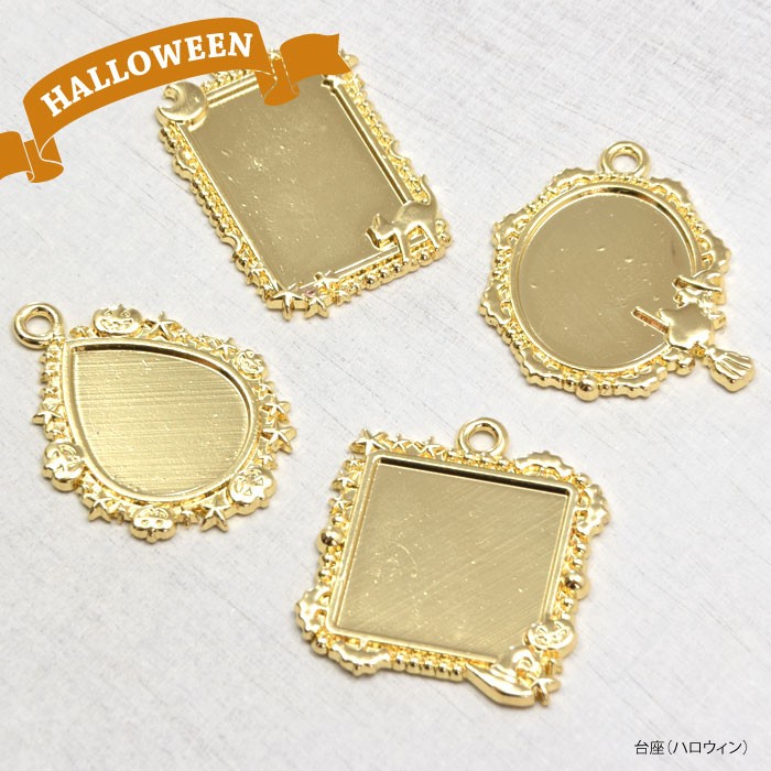 台座 ハロウィン BLAZE セッティング 台座 レジン ハロウィン ゴールド ミール皿 骨 ドクロ 商用利用可能 アクセサリー パーツ 金属チャーム 素材 カン付 手芸