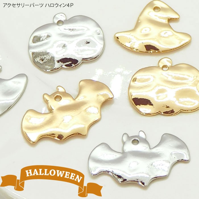 アクセサリー パーツ ハロウィン 4個セット BLAZE ハロウィン アクセサリーパーツ かぼちゃ こうもり 帽子 ハンドメイド 手芸 商用利用可能 資材 素材
