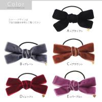ヘアゴム ベロア リボン シンプル チャーム付き ブラック グレー ブラウン レッド パープル BLAZE レディース ヘアアクセ 無地 シンプル 黒 ブラック