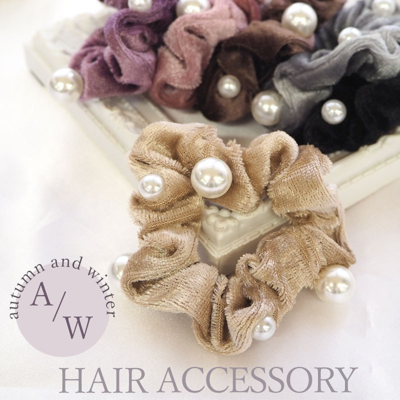 【スタッフのコメント】ベロア×パールがエレガントで高見え抜群な小さめのシュシュ。