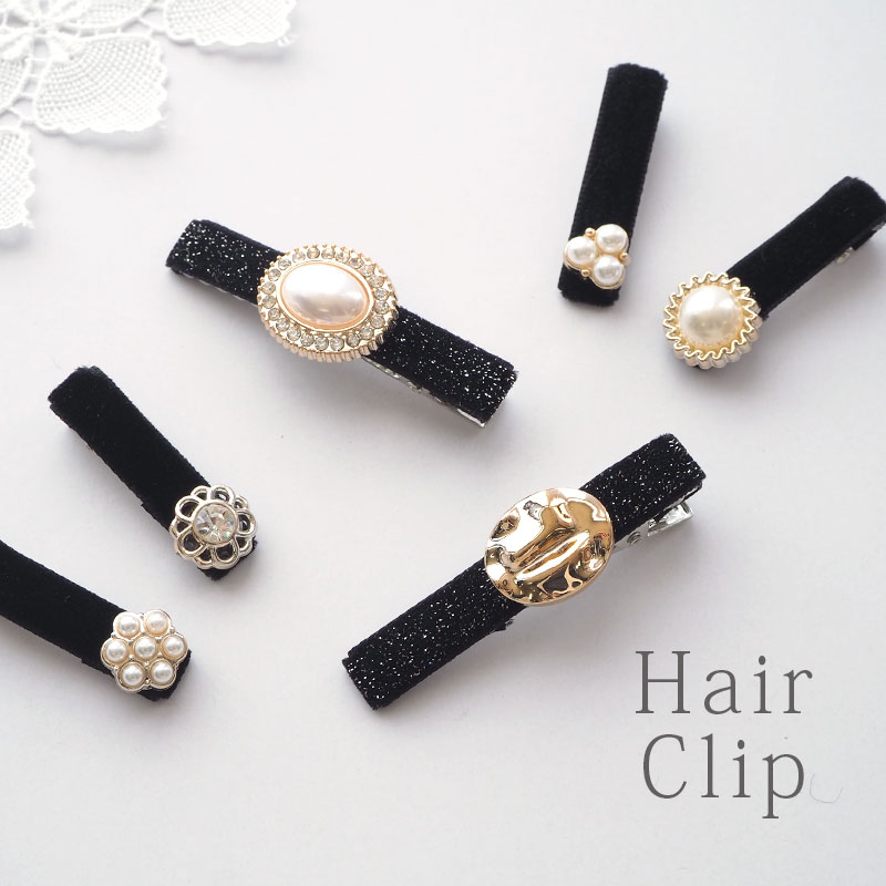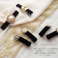 【スタッフのコメント】ブラックのベルベットリボンにパールの組み合わせがおしゃれなヘアクリップ。