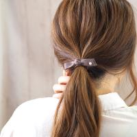 【スタッフのコメント】パールがアクセントになったフェイクレザーのリボンヘアゴム。