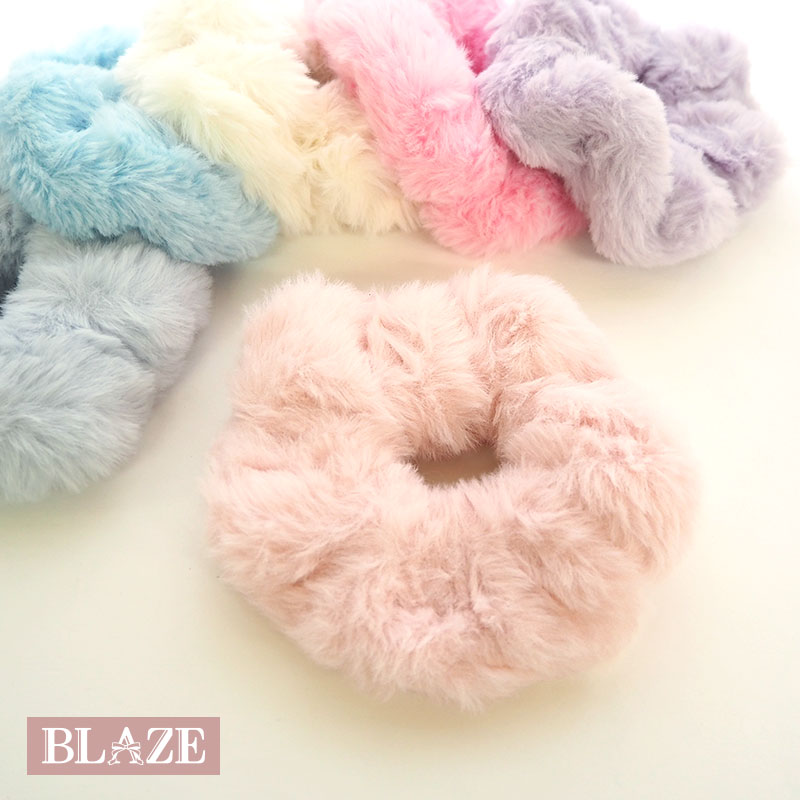 シュシュ ふわふわ ソフトパステル ファー ヘアアクセサリー まとめ髪 大きめ ポニーテール シンプル 無地 カジュアル おしゃれ かわいい キッズ 子供 BLAZE