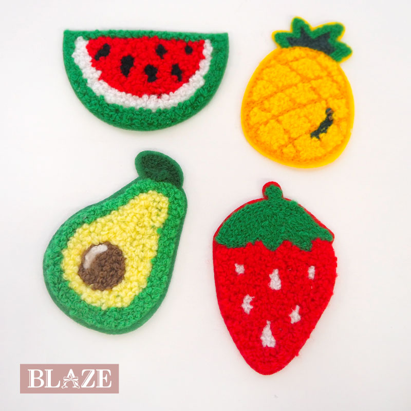 ワッペン アイロン 接着 刺繍 フルーツ もこもこ アップリケ BLAZE ハンドメイド クラフト 商用利用可能 リメイク アレンジ 入園 入学 貼り付け 補修