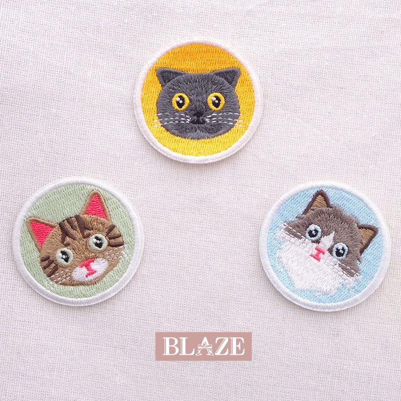 ワッペン アイロン接着 刺繍ワッペン 猫 ねこ ネコ フェイス サークル BLAZE ハンドメイド クラフト 手芸 商用利用可能 資材 材料 リメイク アレンジ かわいい