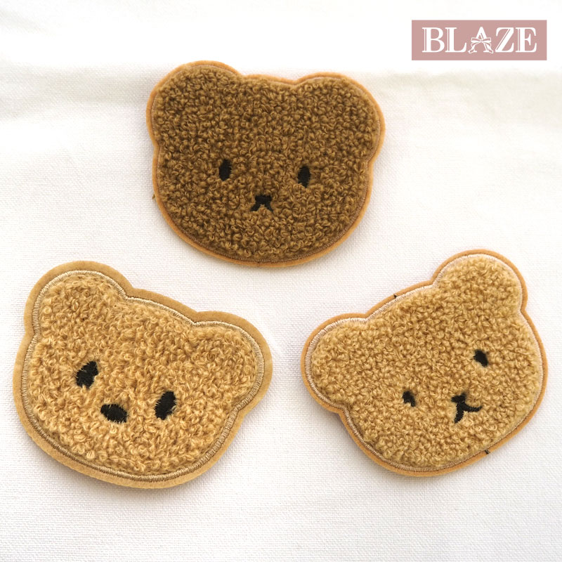 刺繍ワッペン アイロン 接着 くま もこもこ 大きめ アップリケ ブラウン BLAZE ハンドメイド クラフト 手芸 手作り かわいい おしゃれ わっぺん 入園 入学