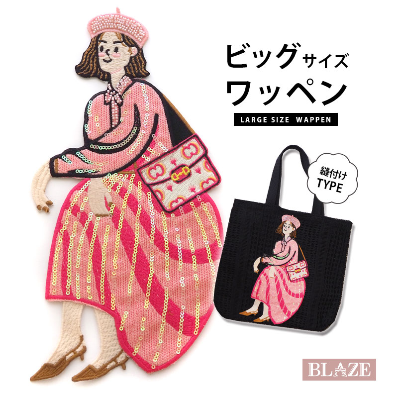 縫い付け ワッペン 刺繍 ガールズ ビッグ 大人向け 大きめ 大きい 女の子 女子 ファッション おしゃれ かわいい バッグ 洋服 ハンドメイド 手芸 手作り
