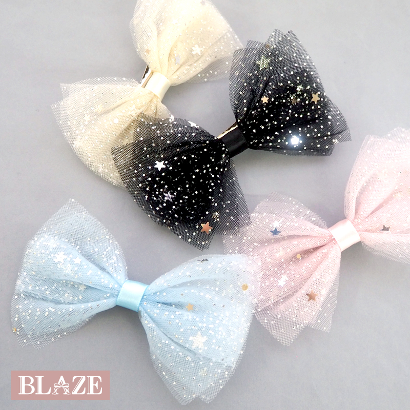 ヘアクリップ リボン チュール スター 星柄 キッズ 子供 髪飾り かわいい フォーマル 発表会 入園 入学 結婚式 卒園式 入学式 大きめ ヘアアクセサリー BLAZE