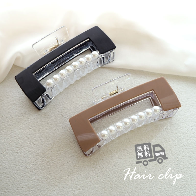 宅配便送料無料 バンスクリップ 大きめ スクエア パール ヘアアクセサリー ヘアクリップ 大きめ しっかり 髪多い おしゃれ かわいい 髪留め 髪どめ まとめ髪