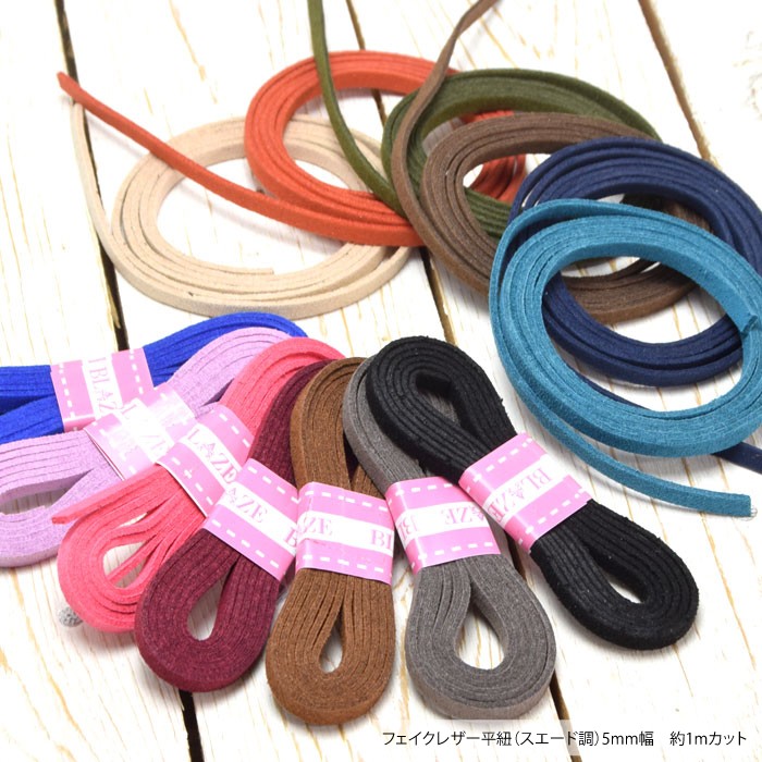 フェイク レザー 平紐 スエード調 5mm幅 約1mカット 商用利用可能 ハンドメイド クラフト 手芸 資材 素材 材料 アクセサリーパーツ アレンジ リメイク