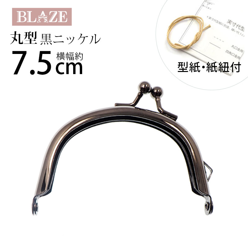 がま口 口金 パーツ 丸型 幅約7.5cm 黒 黒ニッケル ブラック ハンドメイド 手芸 手作り クラフト 差し込み レシピ 型紙付き