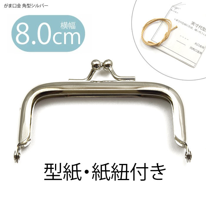 がま口 口金 角型 シルバー 幅約8cm BLAZE ハンドメイド 手芸 ポーチ 金具 差し込み レシピ 型紙付 商用利用可能 リメイク がま口金 ポーチ ケース パーツ
