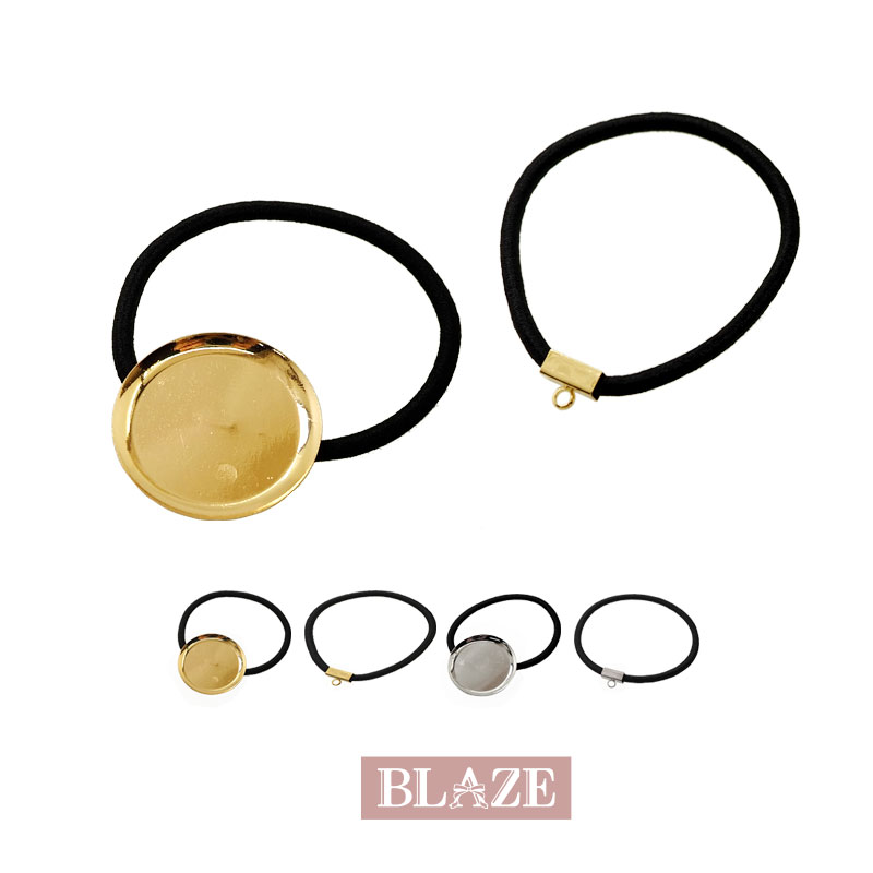 ヘア金具 ヘアゴム カン付き 皿付き 皿直径約3cm カン0.4×0.9cm ヘアゴム長さ約16cm 商用利用可能 穴なし 丸皿 ミール皿 髪飾り BLAZE レジン ハンドメイド