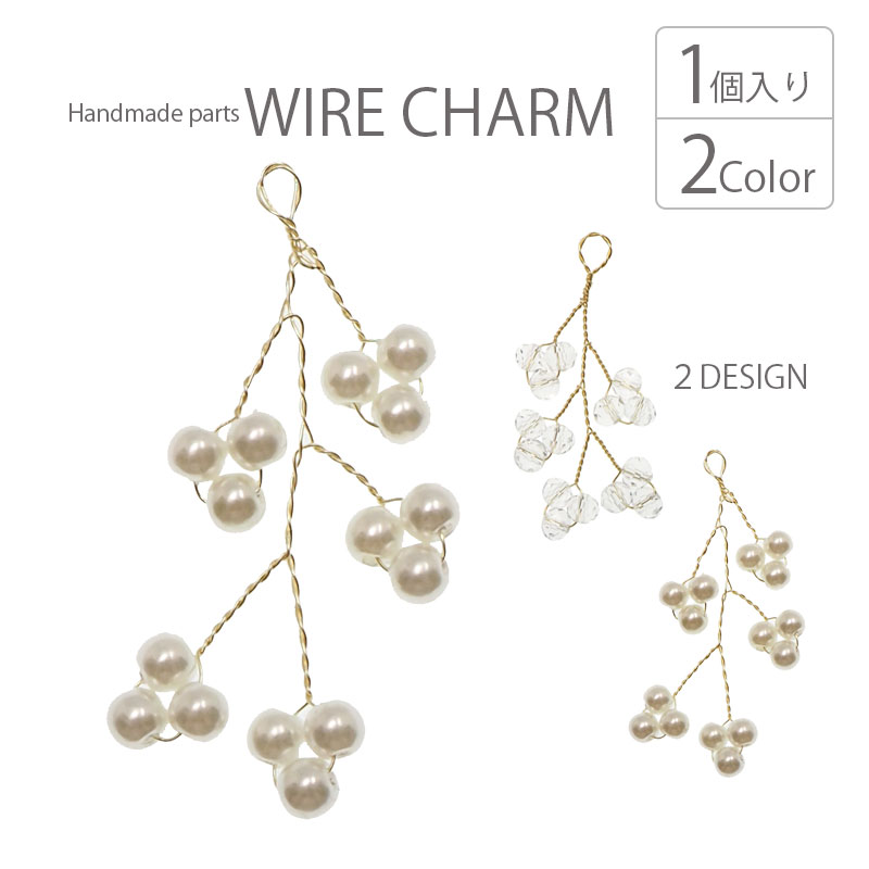 ワイヤー チャーム 小枝 パール ・ クリア BLAZE アクセサリー パーツ コイルチャーム ワイヤーチャーム 手芸 手作り ガラス 素材 作製 資材 商用利用可能
