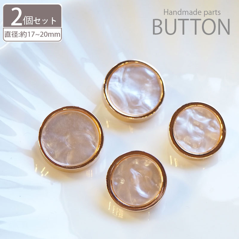メタル ボタン シェル調 ラウンド ゴールド 2個セット 約17mm ・ 20mm BLAZE ハンドメイド クラフト パーツ 商用利用可能 リメイク 洋服 付け替え 飾りボタン