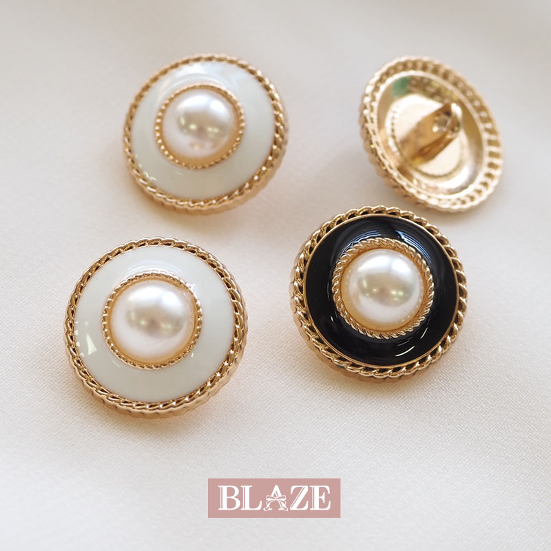 2個入り メタル ボタン 18mm センター パール ホワイト ブラック ゴールド BLAZE ハンドメイド クラフト 手芸 金属 パーツ 商用利用可能 装飾 アレンジ 洋服